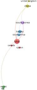 VOSviewer was used in order to more precisely determine the connection of keywords. Using this tool, a visual representation of the connection of the analyzed topics was created. In order to emphasize the most important topics, as well as for a simpler visual representation, those topics with a frequency of ≥3 were taken into consideration. In the described way, four clusters were formed (Figure 4).