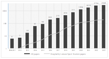 Although PLS-SEM is present in academic discourse on various topics in the field of tourism, its dissemination remains relatively limited. A detailed analysis of research articles found in the Web of Science database shows a significant increase in the use of PLS-SEM in tourism studies since Assaker et al. first included it in 2012. However, the peak recorded in 2023 represents only a small proportion of the total corpus of studies that have used PLS-SEM in their methodology (Figure 1).