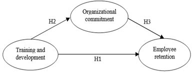 H3: Organizational commitment mediates the relationship between training and development and employee retention in the hotel industry.