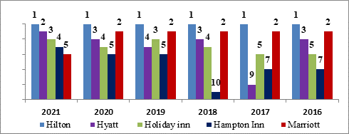 Figure 1: Dynamic ranking map of international hotel brands, 2016-2021
