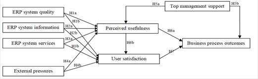 Perceived usefulness of the ERP system refers to improving business skills and individual performance, which later leads to their satisfaction when using the given system (Seddon, 1997). Cheng (2019) provides evidence that there is a greater chance that the user will be satisfied with the ERP system if he previously found that the same ERP system improves business performance in the company. In the context of the relationship between perceived usefulness and business process outcomes, some empirical studies, such as Rajan and Balan (2015) and Okaily et al. (2021), find that perceived usefulness has an impact on business process outcomes. Therefore, it is assumed that in tourism companies ERP systems correspond to the set tasks and consequently increase user satisfaction and improve the operational performance of those companies. Accordingly, the following hypotheses are set: